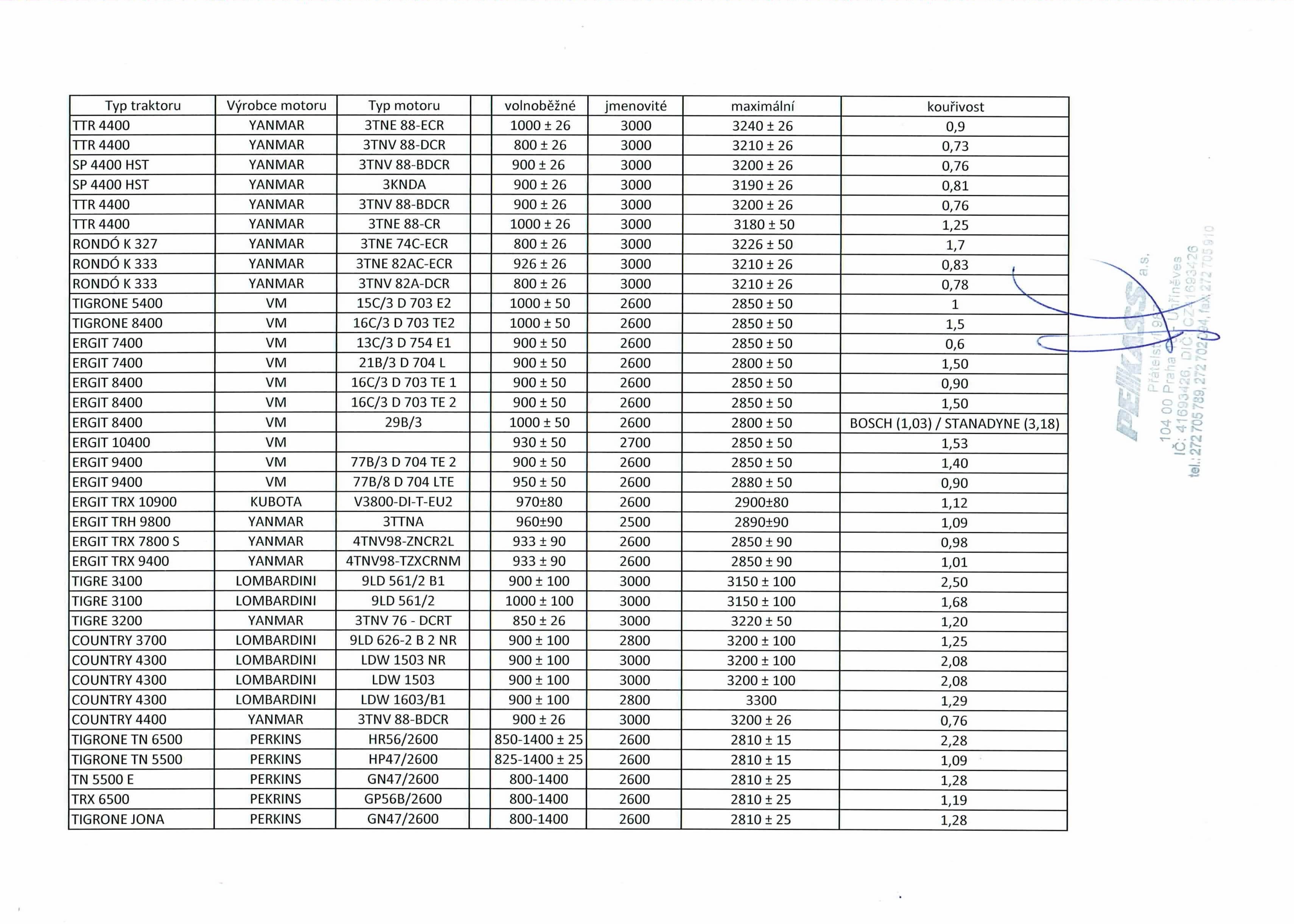 - stanovisko k hodnotám kouřivosti motorů TATRA řady T815 a T815-2