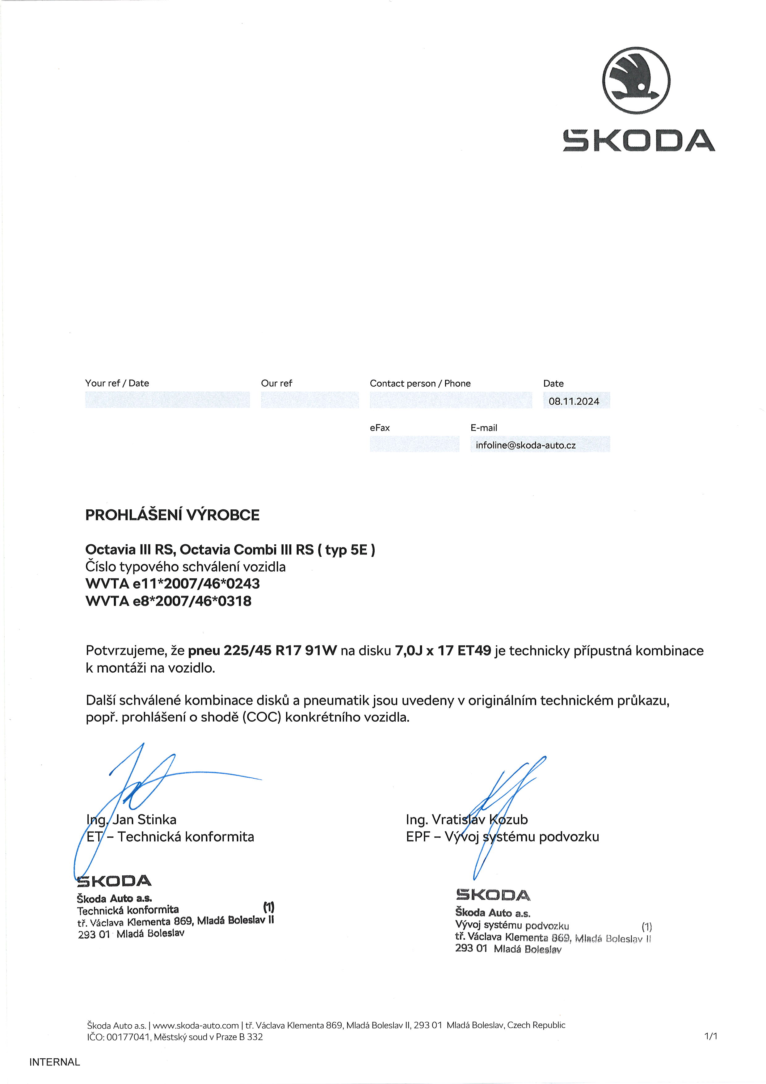 Vyjádření Škody auto a.s. k záměnným dílům, přestavbám, dovozům, atd. - 10/2021