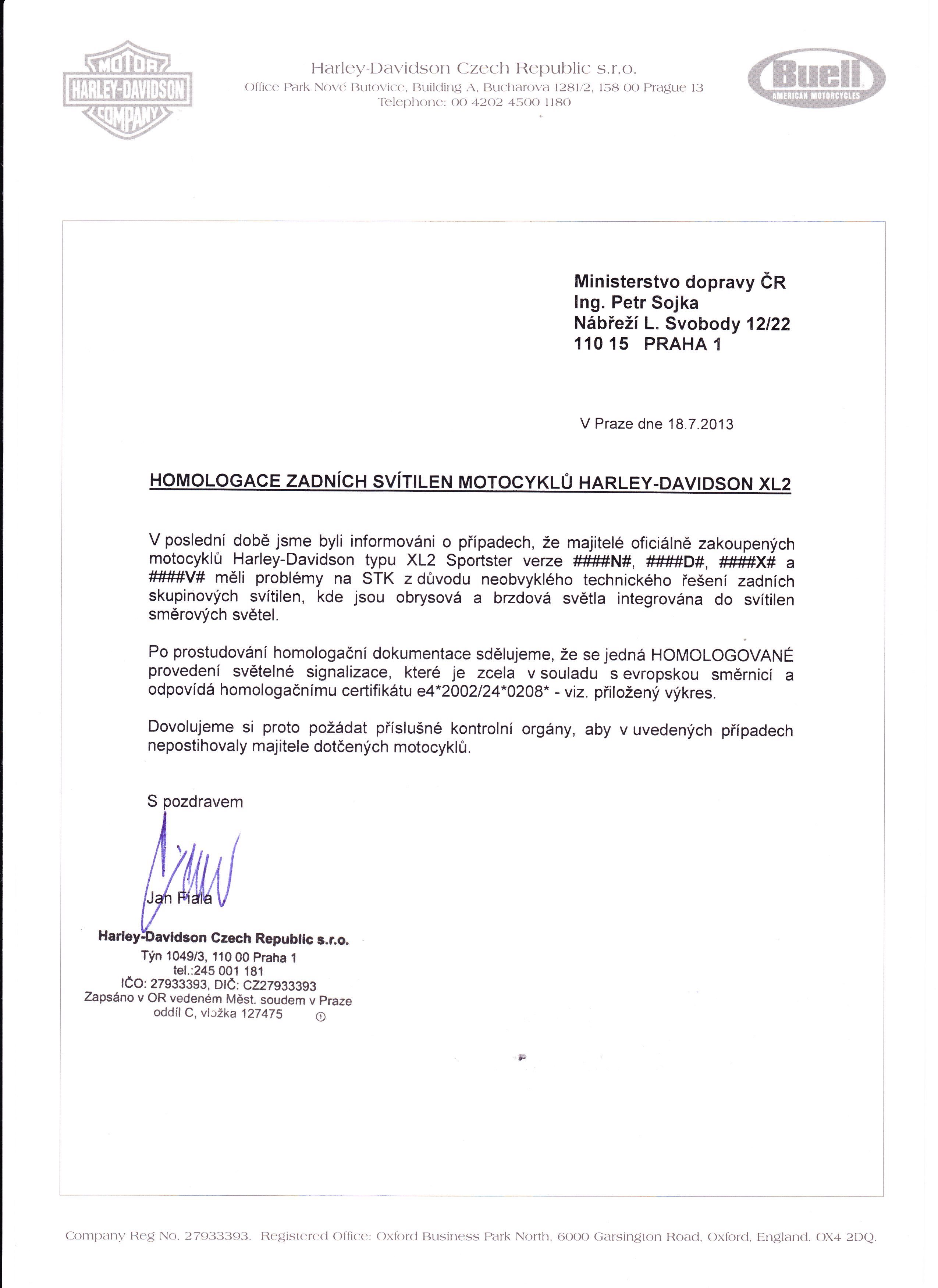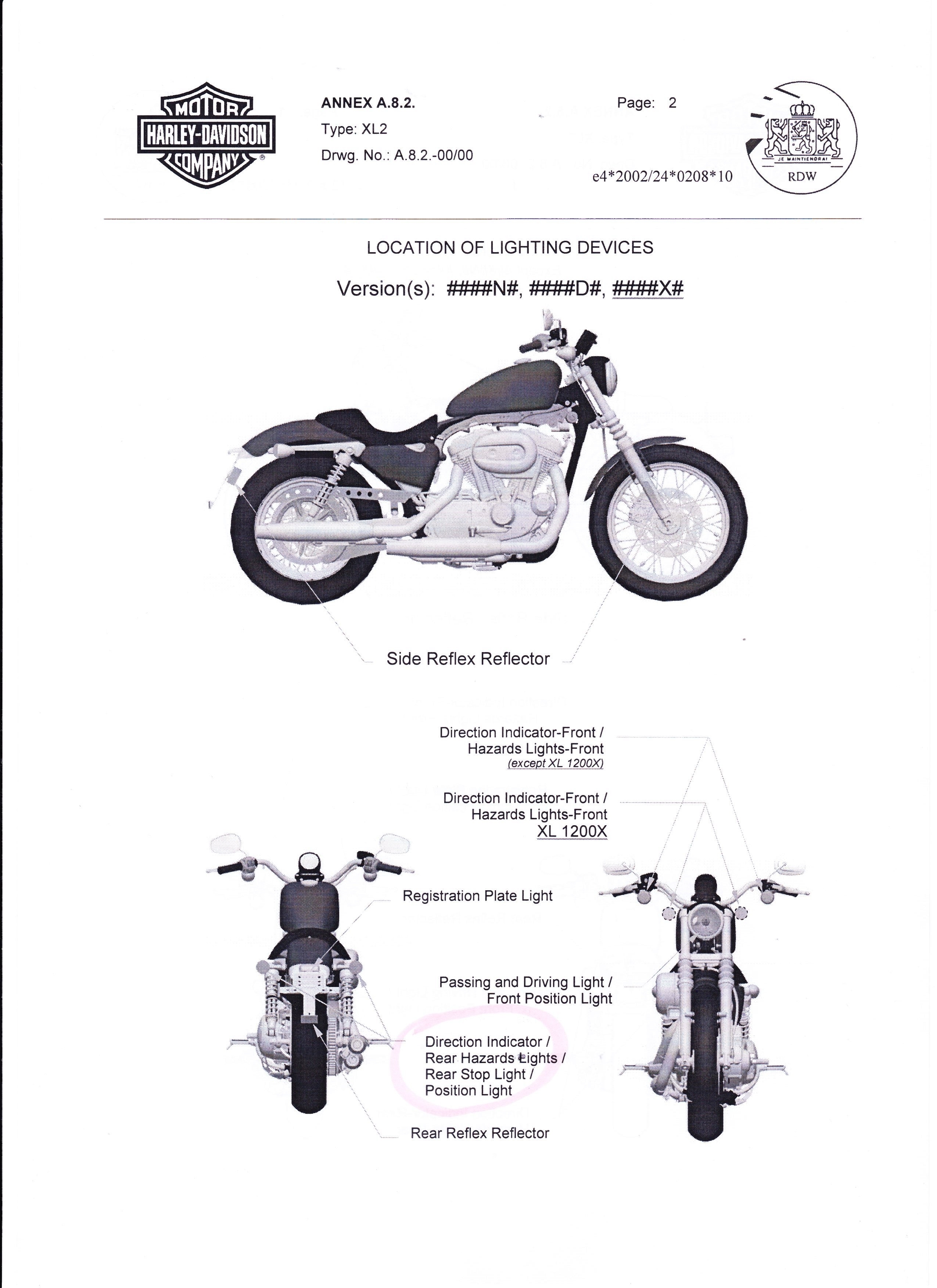 - Homologace zadních svítilen motocyklů Harley-Davidson XL2, příloha1, příloha 2