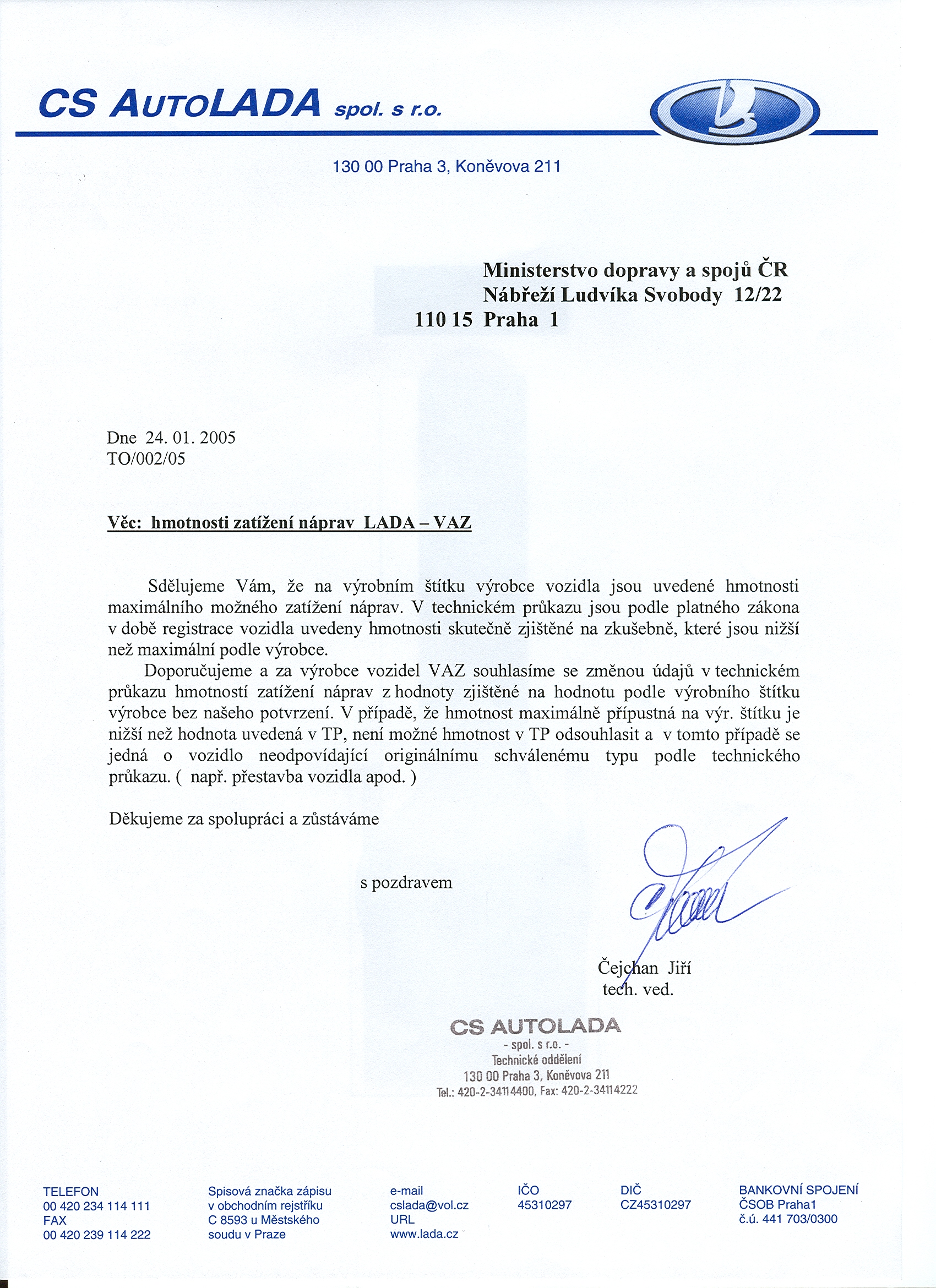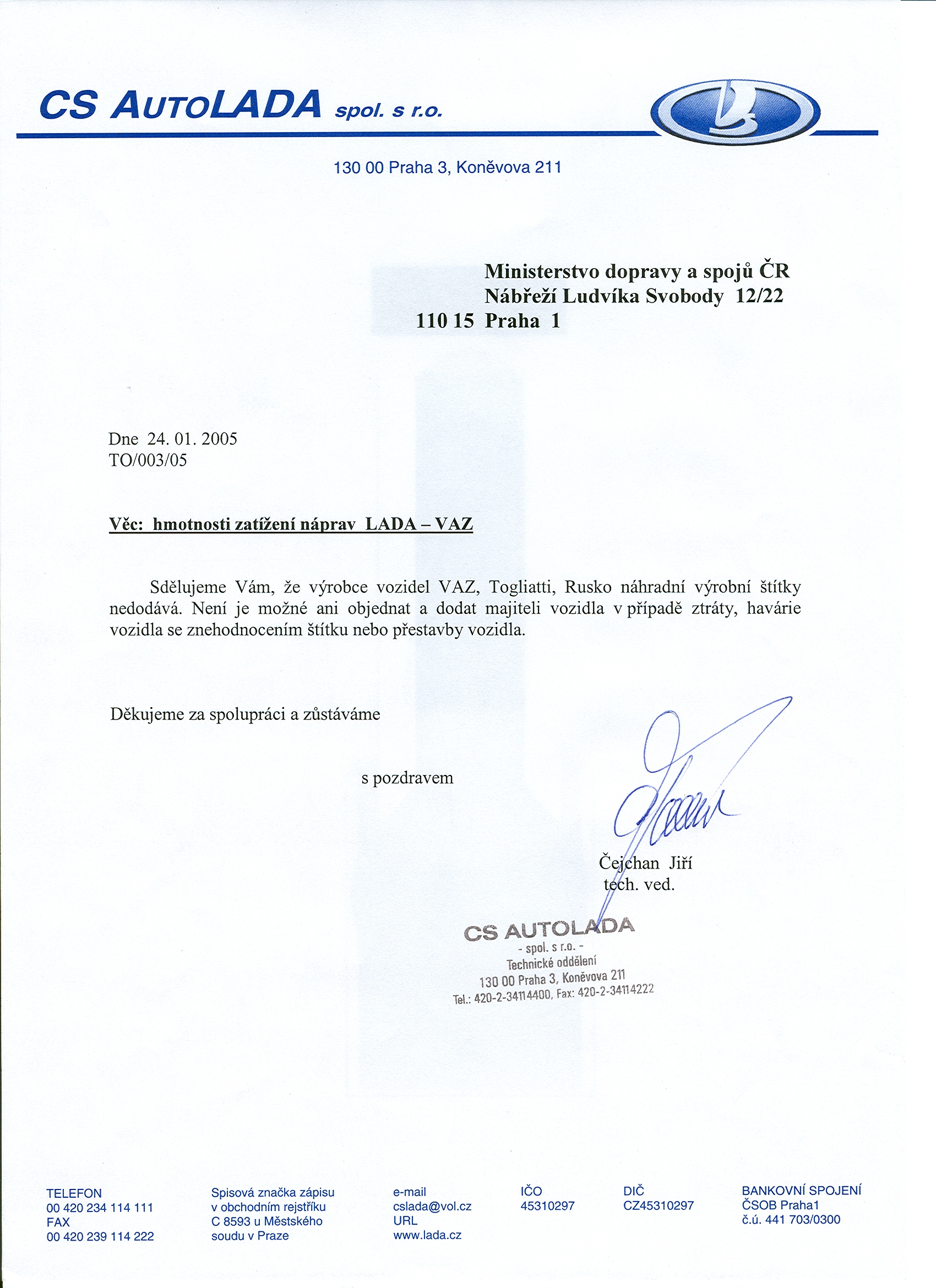 - Vyjádření importéra nákladních vozidel IVECO k anomálii v zápisu dvojmontáže pneumatik v technickém průkazu